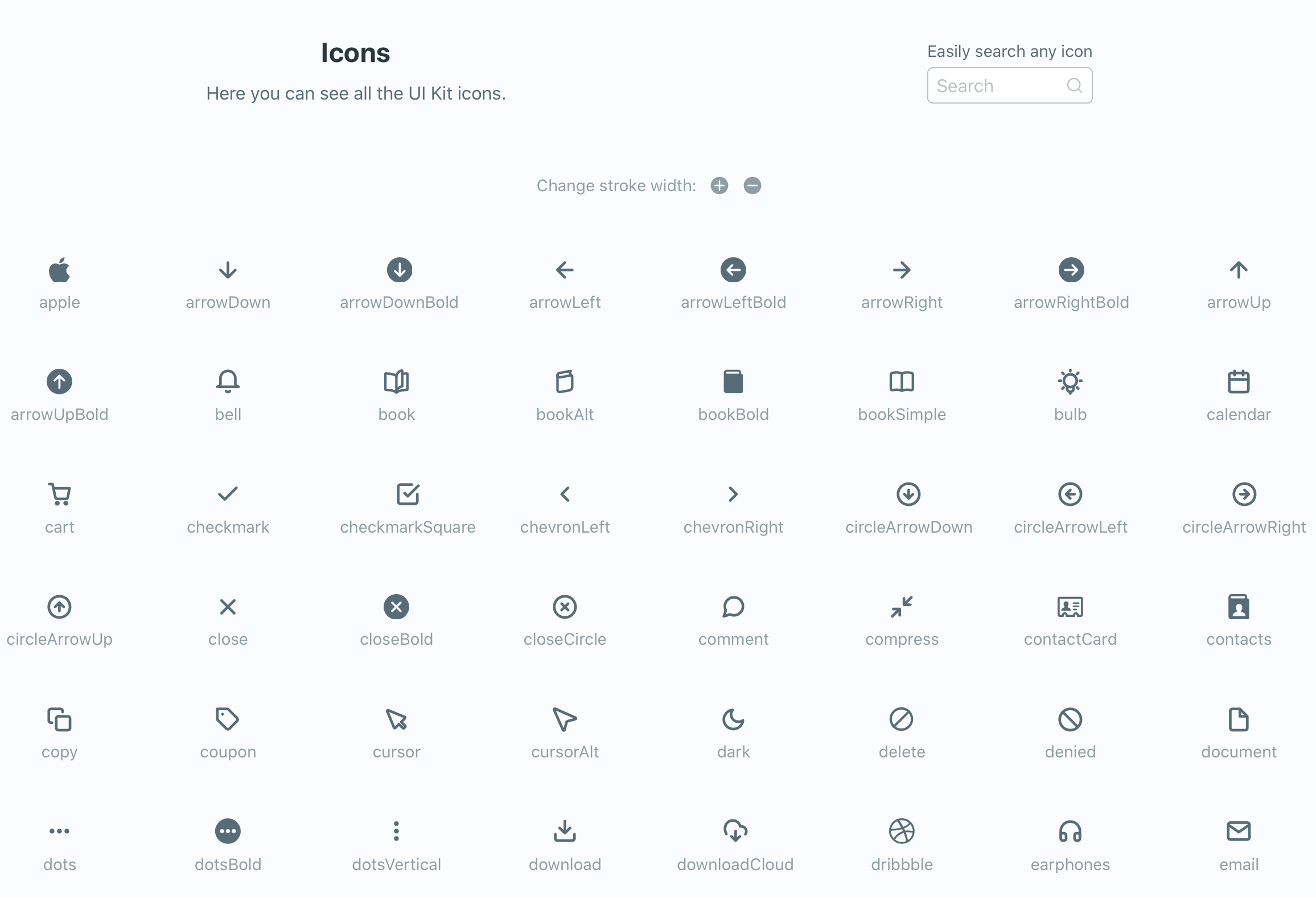 The cool thing is that stroke width and icon size are configurable via props, so this makes for a very seamless experience. These icons are also used in other components, so that if I wanted to use an icon on a button I could do something like this: